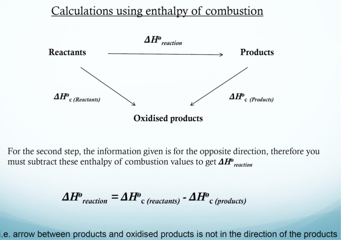 Hess’ law: If a reaction can take place by more than 1 route and the initial and final conditions are the same, the total enthalpy change is the same for each route.