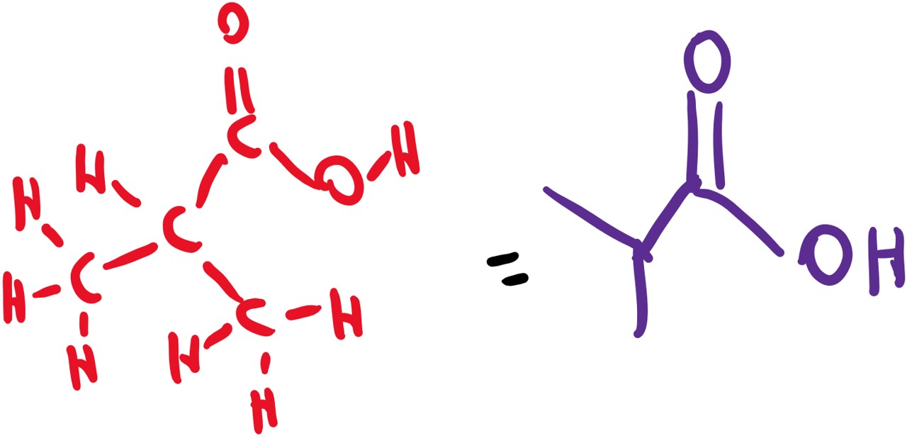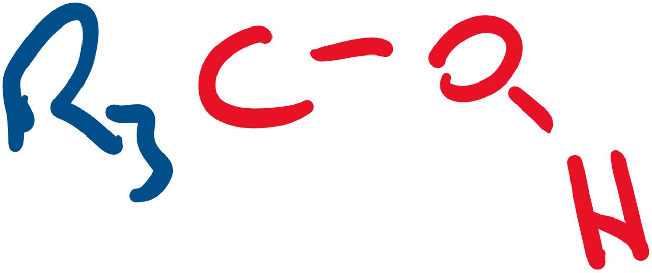 where R is a generic group beginning with a carbon atom, usually representing an alkyl (alkane) chain: