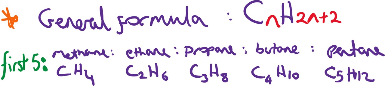 These are saturated (contain only single bonds) hydrocarbons and are the simplest homologous series. Importantly they make up the backbone of most organic molecules (as most molecules will have at least one other functional group).