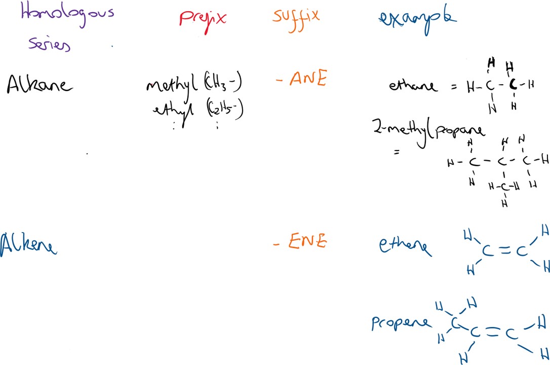 Below is a list of all the homologous series that are required for the leaving cert (except knowledge of benzene).