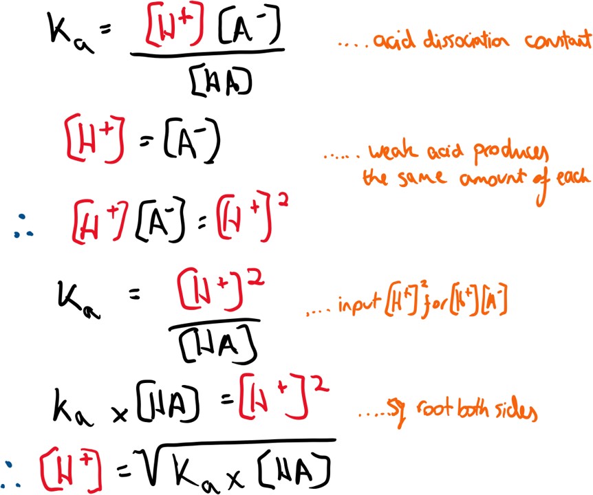 To calculate the pH of a weak acid, the acid dissociation constant above has to be used.