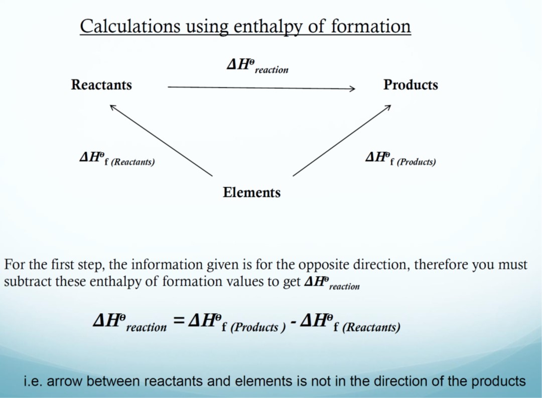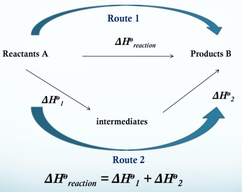 Hess’ law: If a reaction can take place by more than 1 route and the initial and final conditions are the same, the total enthalpy change is the same for each route.