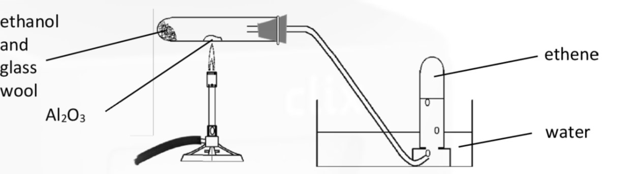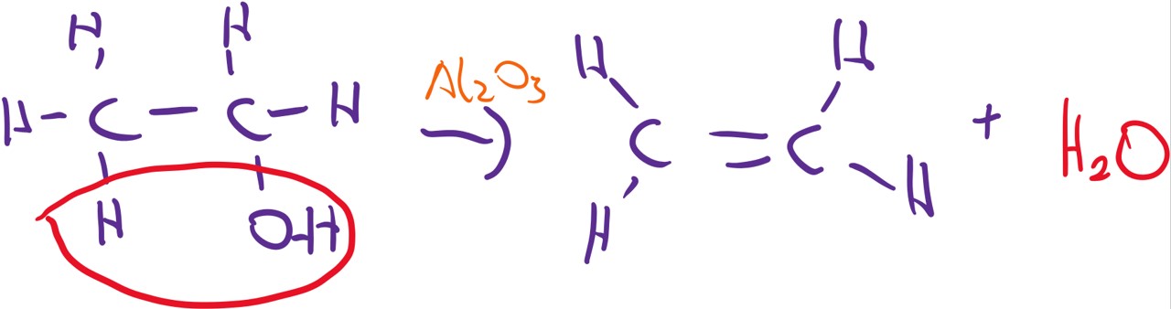 It can also be made synthetically from the dehydration of ethanol using aluminium oxide as a dehydrating agent. This is a popular question on L.C. chemistry. Glass wool is also used to absorb ethanol. Once heat is applied ethanol vapour gets passed over the catalyst and dehydrated. This is an example of an elimination reaction.