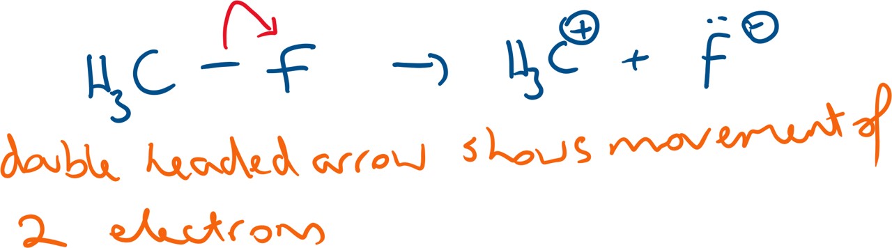 To make new bonds, usually, older covalent bonds need to be broken. They can either break by one of the atoms accepting both of the electrons (the more elctronegative atom will take the electrons) which is known as heterolytic fission.
