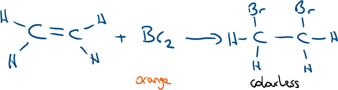N.B.: Test for unsaturation: bromine water (orange colour) is added and this turns colourless when an alkene is present.